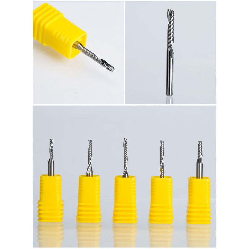 Bộ 5 Dao cắt CNC 3A 1 lưỡi thân 3.175, đầu dao 1.00mm-2.0mm loại tốt, Huhao AAA